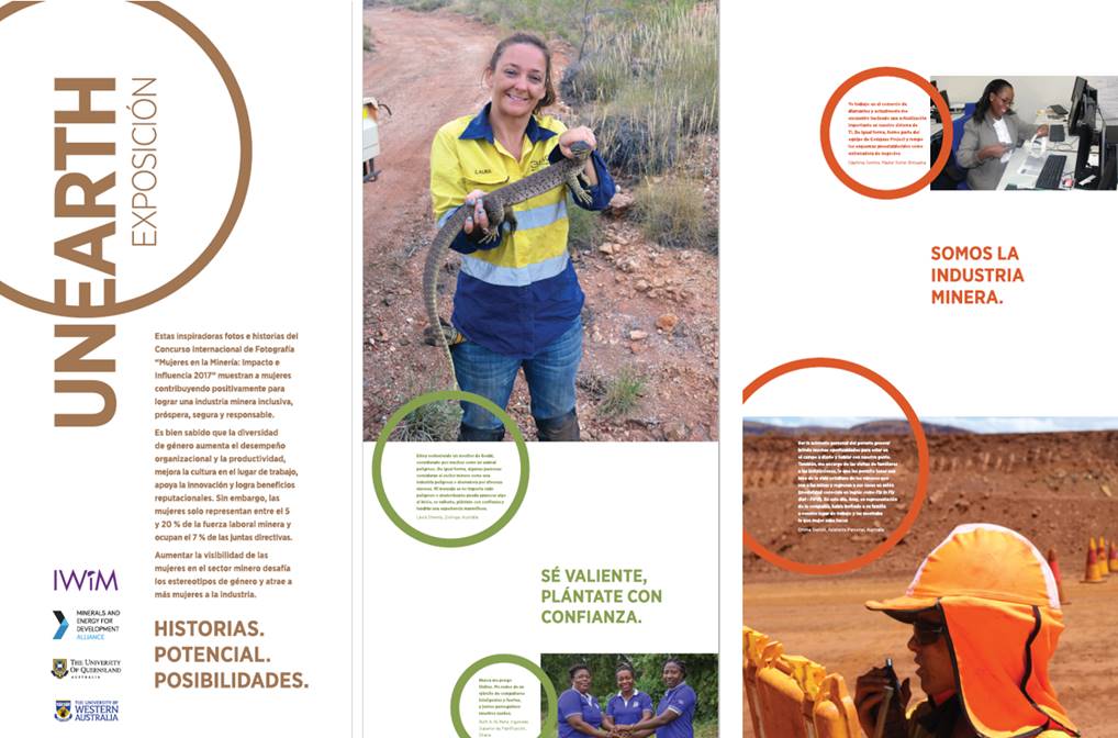 "Women in Mining" es una muestra que tiene como objetivo promover la igualdad de género en el sector minero. La exhibición cuenta con 15 pendones con fotografías de mujeres que trabajan en la industria de la minería, imágenes que ganaron el concurso organizado por IWM UK y Minerals and Energy for Development Alliance, en conjunto con las universidades de Queensland y Western Australia, en el 2017.