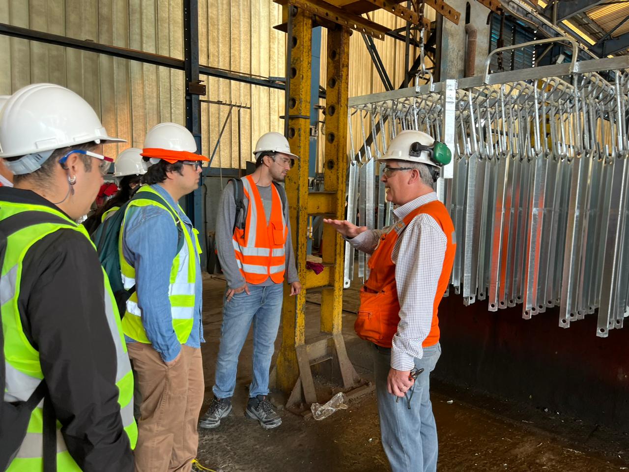 En una segunda oportunidad, la visita se realizó en la empresa BBOSCH, para conocer el proceso de galvanizado en caliente de perfiles de acero. Visualizaron el proceso productivo, capacidades y control de calidad, Los estudiantes fueron recibidos por Christian Sánchez, especialista técnico del área de recubrimientos de BBOSCH, quien ya los había introducido en el tema en una clase previa impartida en horario del curso. Por parte del DIC, el curso fue acompañado por el profesor Juan Carlos Gutiérrez.