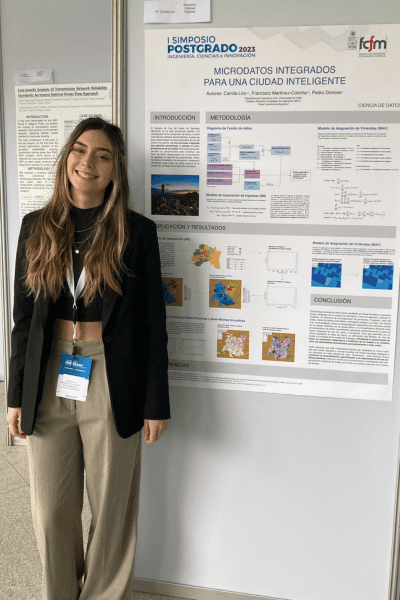 Nuestra estudiante de Magister en Cs de la Ingeniería mención Recursos y Medio ambiente Hídrico, Karina De Requesens, fue reconocida como “Mejor Póster de la Primera Jornada” y obtuvo el segundo lugar en la categoría “Mejores Tesis En 1 Minuto”. “He recibido estos reconocimientos con mucha alegría. El proceso de investigación ha sido frustrante, con un constante ensayo y error, y ver que los resultados estén siendo bien recibidos validan el trabajo de todo el último año y me animan a seguir avanzando. En un ámbito más personal, siempre me ha costado hablar frente a grandes públicos, y haber obtenido también un reconocimiento en ese ámbito me da más confianza para poder presentar este trabajo en otros eventos como son los congresos. Aprovecho esta instancia para agradecer al equipo que me ha apoyado en todo este proceso, a mi profesor guía Juvenal Letelier que me incentiva a sacar mi máximo potencial, y a la gente del laboratorio Copernicus del Centro de Modelación Matemática (CMM) que me ha recibido y apoyado en todo aspecto desde el inicio del trabajo”, señala Karina.